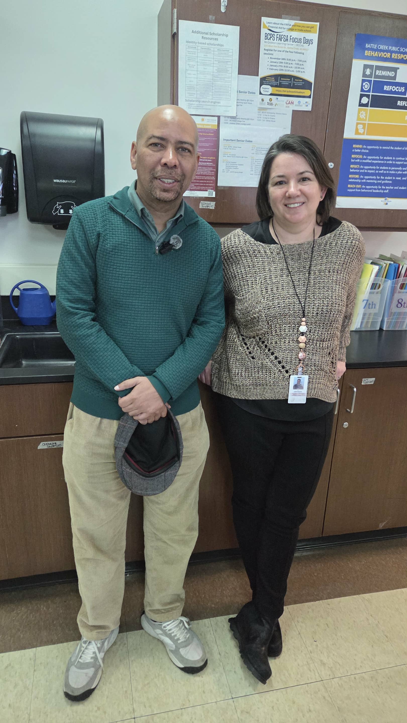 The visit was organized after school staff member Sarah Johnson invited Almonte during his book-signing appearance at Barnes & Noble in Battle Creek the previous evening.